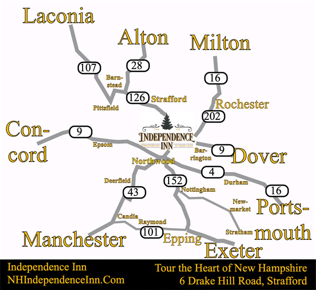 - Lakes Region to the north to visit Alton, Laconia, Lake Winnipesaukee, and several hiking mountains.