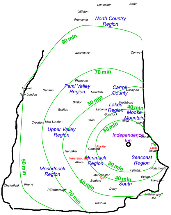 - The Merrimack region to the west where you can tour our capital in Concord, visit the Prickle (another clubhouse with regular meetups), and hang in our most populous city of Manchester, with its busy regional airport, and our oldest liberty community clubhouse the Quill.